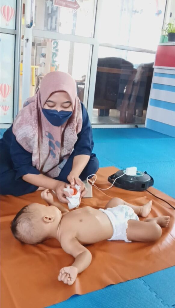 Pijat bayinya jaga dilengkapi ‘nebul’ untuk anak-anak yang sedang sait flu.